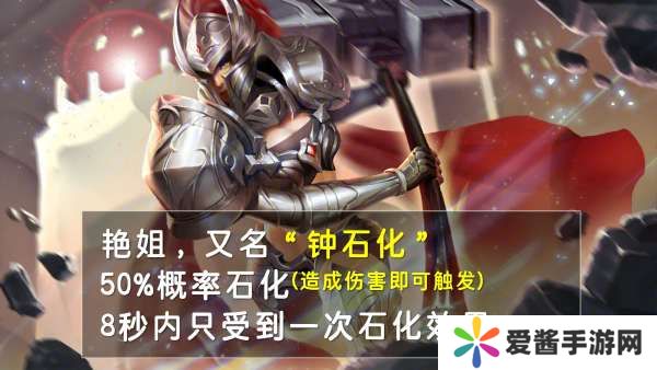 被动很好理解,造成伤害时会触发石化,这个造成伤害可不局限于普攻或技能,只要是对敌方造成伤害,都能按照50%的概率触发,这个概率是以单次攻击来计,因此不存在这次攻击没石化,下一次就一定会石化。