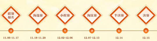 本届“天下会武”联赛整体将分为五个阶段:海选赛、小组赛、淘汰赛、半决赛、决赛,其中小组赛参赛名额共128支队伍,淘汰赛名额64支队伍,并分为青龙、白虎、玄武、朱雀四大组,最终四大组第一名争夺联赛冠军!