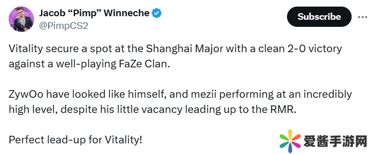 Vitality成为第二支晋级Major正赛的欧洲队伍。