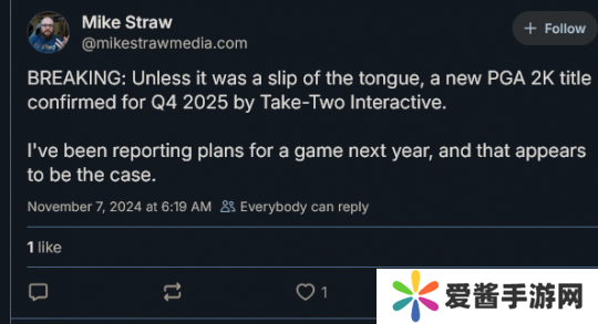 目前官方暂未提供新《PGA巡回赛》的其他消息,并且也不确定这是公司发言人的一个口误还是正式的公告。