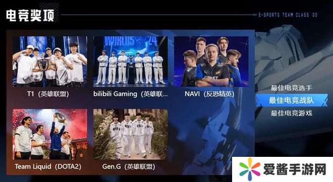 此外,T1、BLG与GEN.G三支英雄联盟职业战队均获得了年度最佳电竞战队的提名,另外两支提名队伍则分别是CS项目的NAVI以及夺得2024年DOTA2国际邀请赛冠军的Team Liquid。