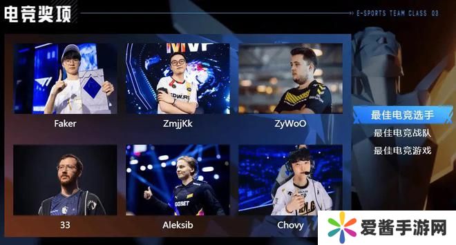 共有6位电竞选手获得年度最佳电竞选手提名,除了前面提到的在今年帮助EDG战队夺得2024无畏契约全球总决赛冠军、同时也当选总决赛最有价值选手的康康(游戏内ID:ZmjjKK)之外,还有CS2项目领跑2024大赛Rating的ZywOo、突破生涯魔咒夺冠的世界最佳指挥选手之一的Aleksib、DOTA2项目夺得2022、2024年TI冠军的33、带领T1卫冕英雄联盟S赛冠军的传奇选手Faker以及来自GEN的中单选手Chovy。
