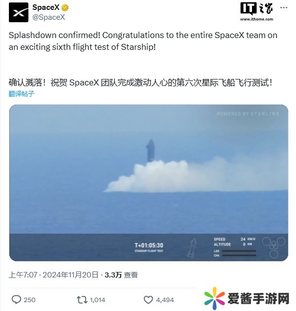 起飞一个多小时后,SpaceX 宣布星舰(S31)在印度洋上成功进行翻转机动和着陆点火,顺利完成水上软溅落 / 软着陆,本次试飞任务**成功。