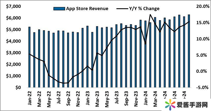 根据机构数据,苹果 App Store 应用商店 10 月营收同比增长 15%,而今年 9 月营收为 14%,支撑了 2025 财年第 1 财季(2024 年第 4 季度)强劲的服务收入预测。本站附上相关图片如下: