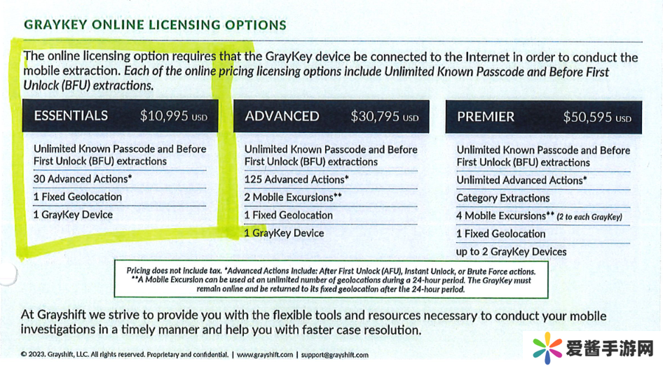 GrayKey 采购费用