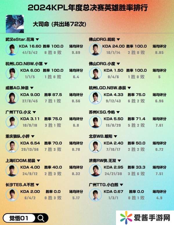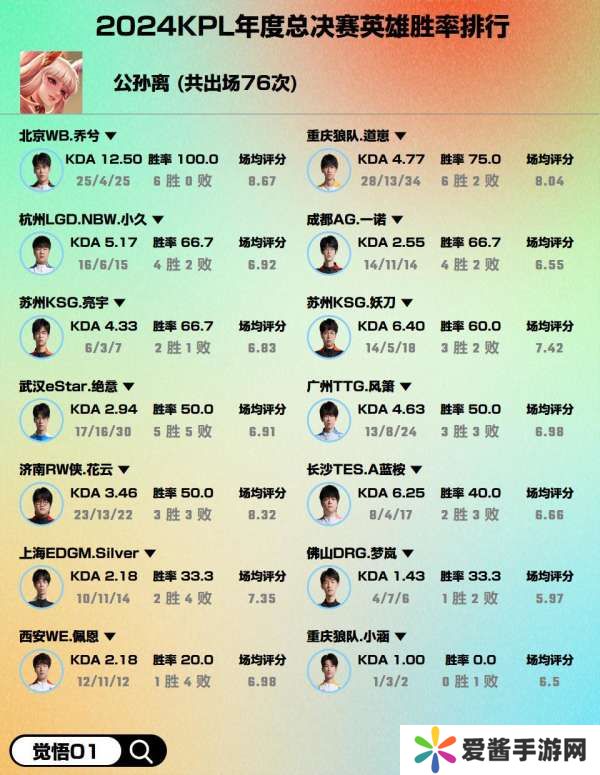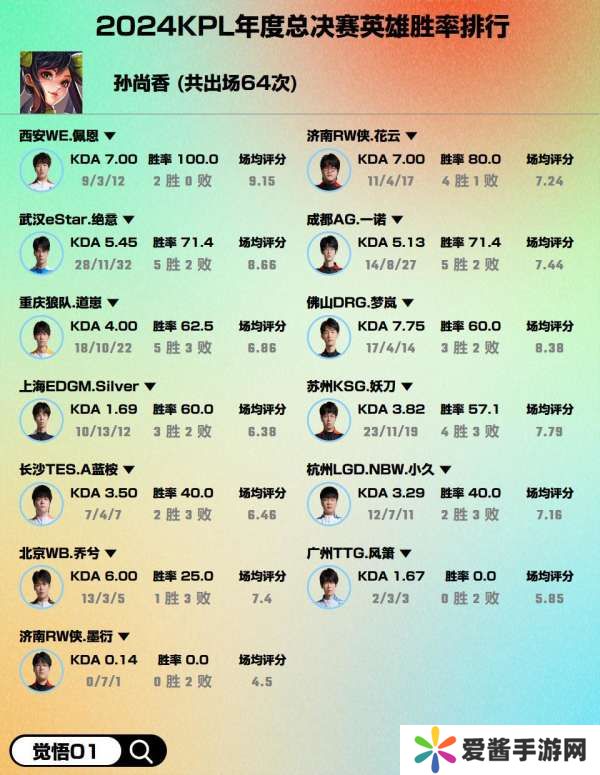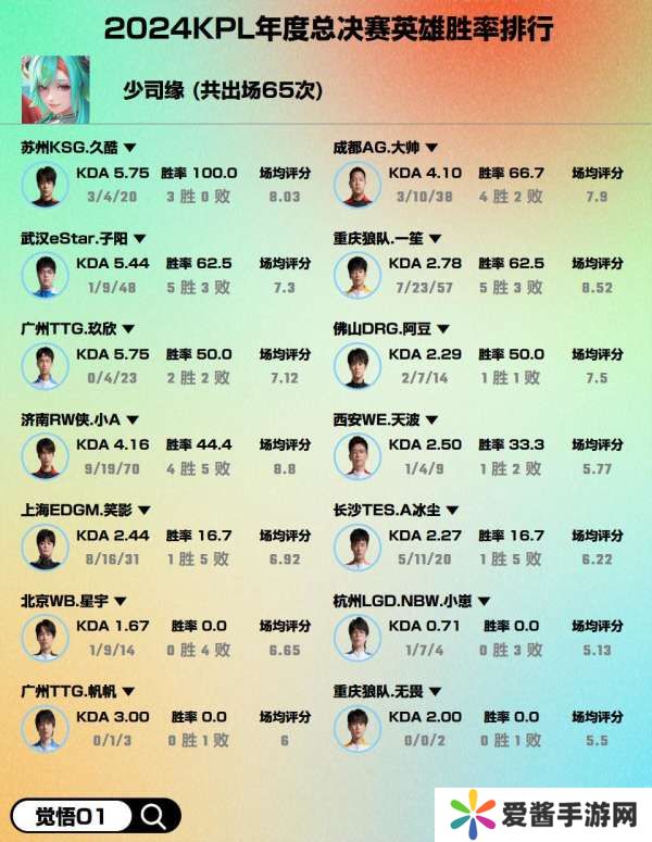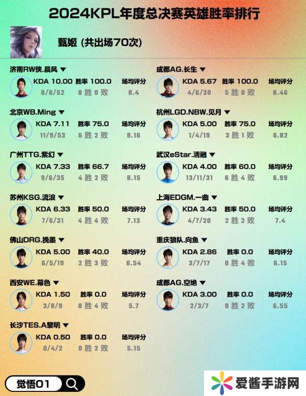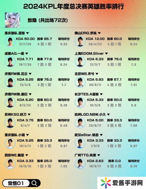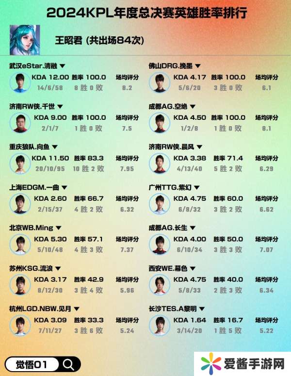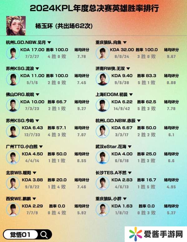 年总出场大于等于50次英雄胜率排行,你怎么看?