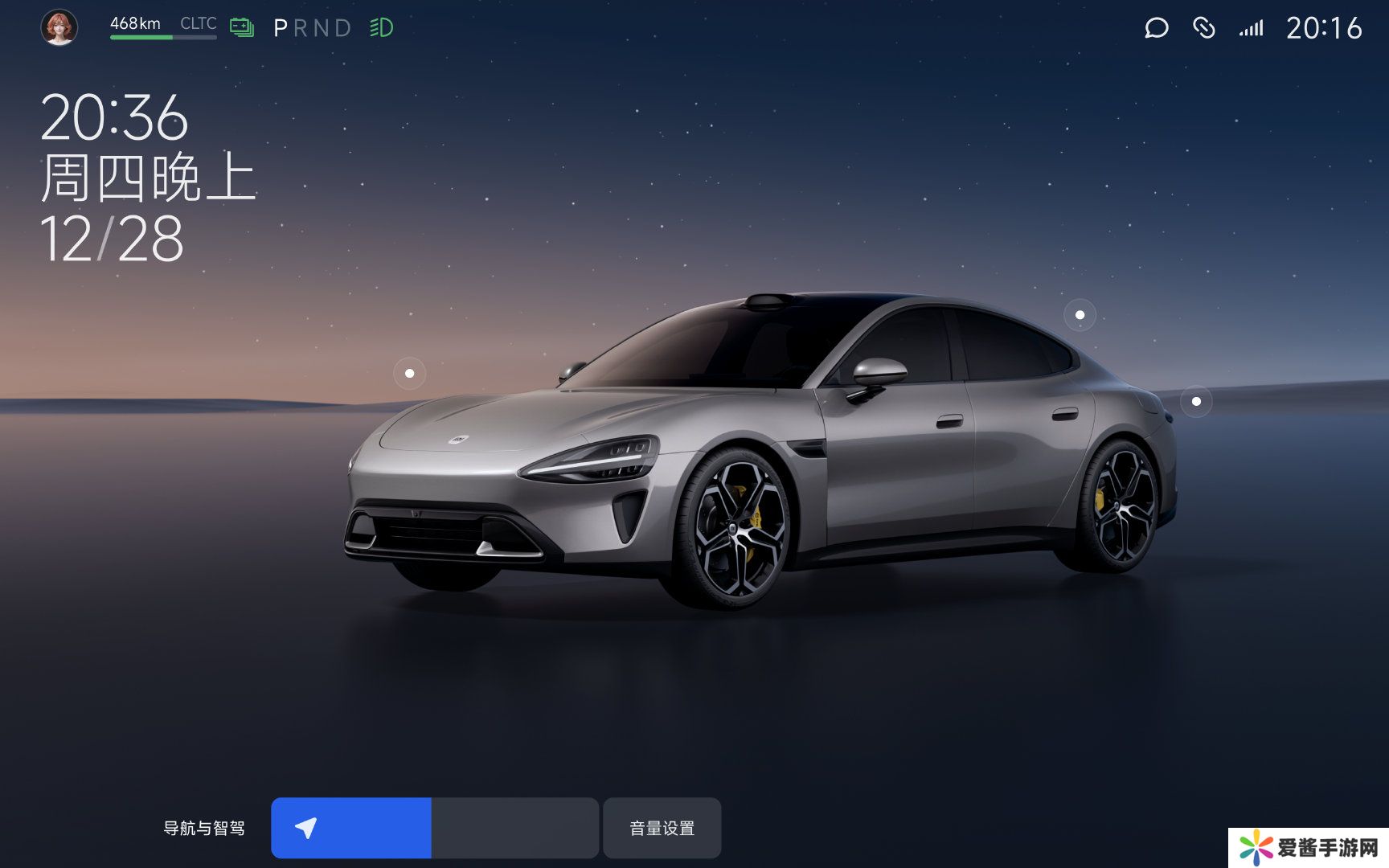 还可以通过方向盘右侧滚轮调节音量大小,系统会自动调节当前活跃的声音音量,并且会在屏幕右下角展示正在调节的音量条,点击音量条右侧的「音量设置」可以拓展调节其它声音音量。