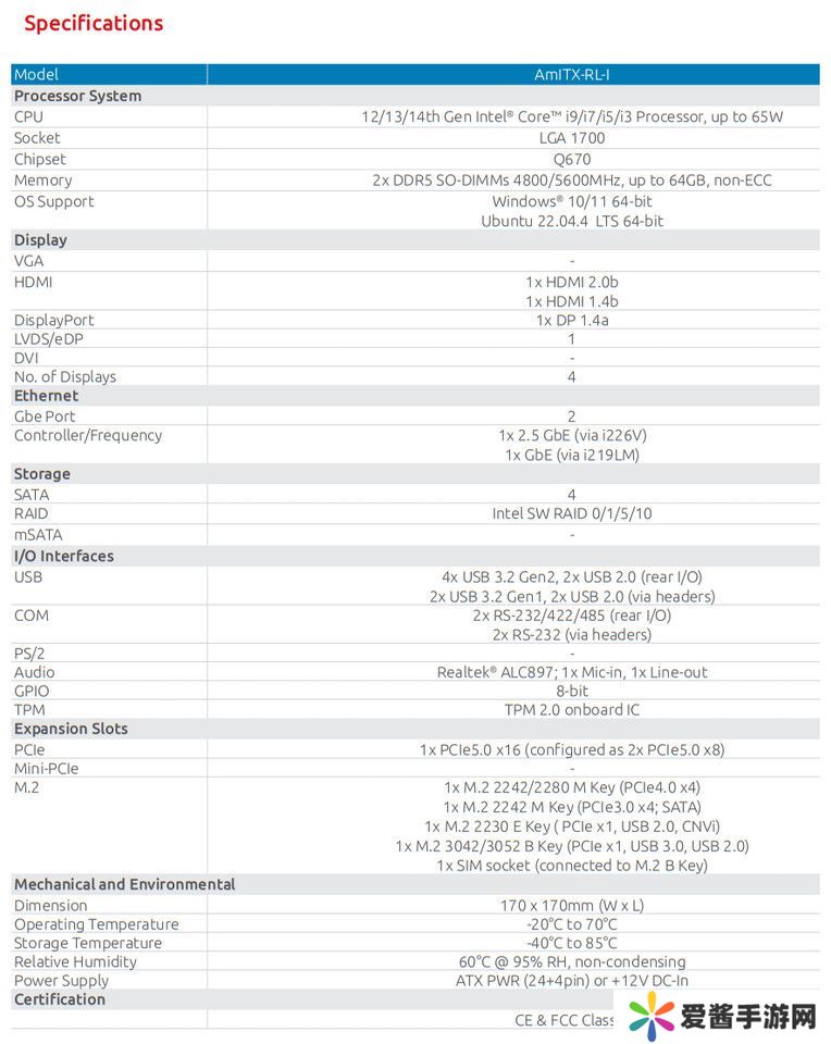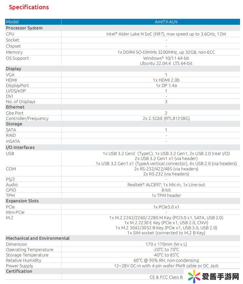 本站在上文中已附上规格表,两款主板均配备双网口设计,配有 USB 3.2 Gen 2 接口、用于安装 SSD 和无线网卡的 M.2 B / E / M 插槽,以及 RS-232/422/485 接口连接机器组件。