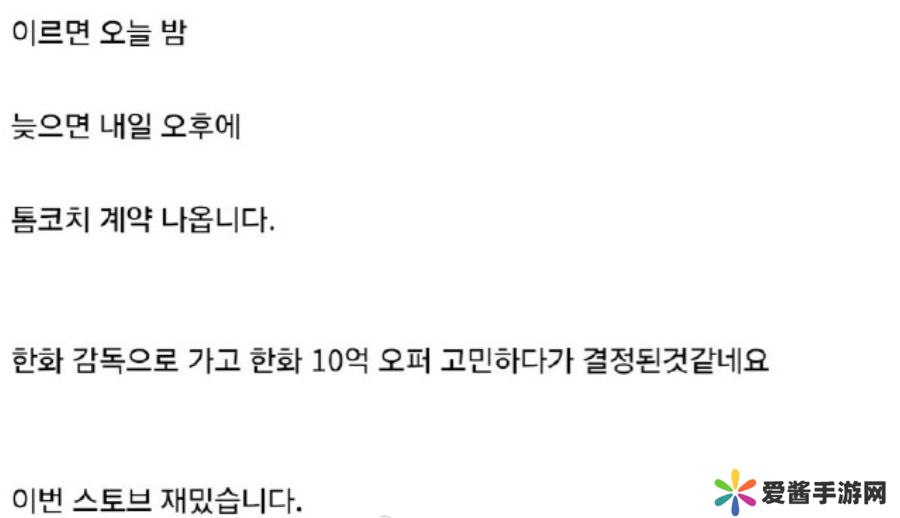 Tom教练签约了。去韩华执教,考虑韩华10亿(约552万元人民币)报价后决定了