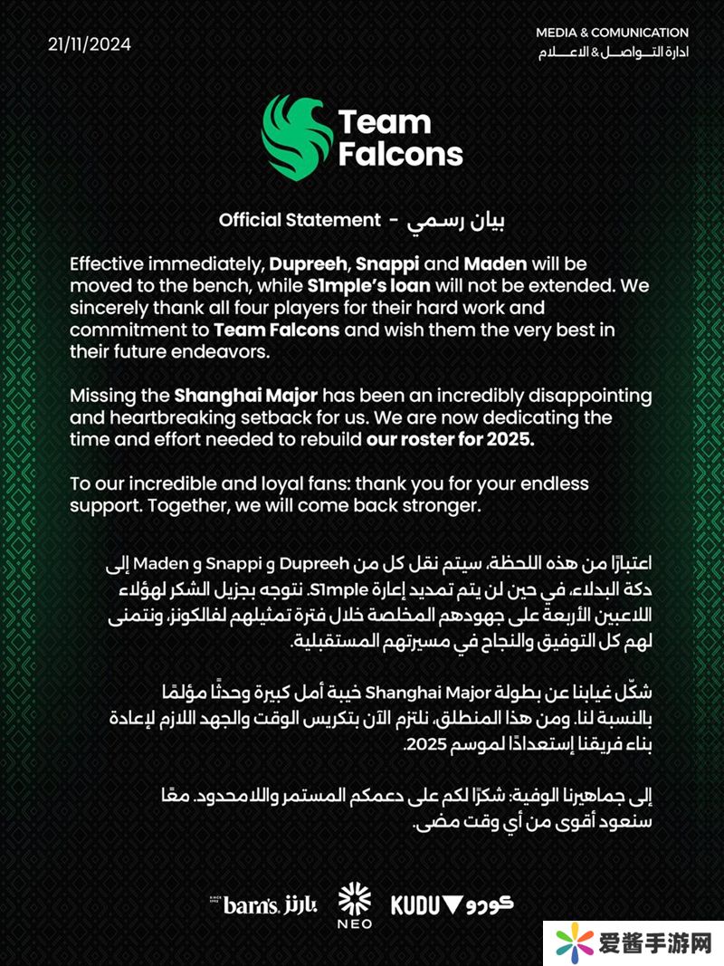 Mohammad Malhas | BOROS被队伍下放。原因在于Falcons冲击PGL 哥本哈根Major失败。