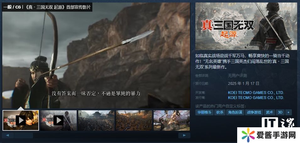 本站 11 月 22 日消息,由光荣特库摩游戏公司(Koei Tecmo Games)开发的《真・三国无双 起源》试玩版今日正式上线,下载版预购也将于同日开始。