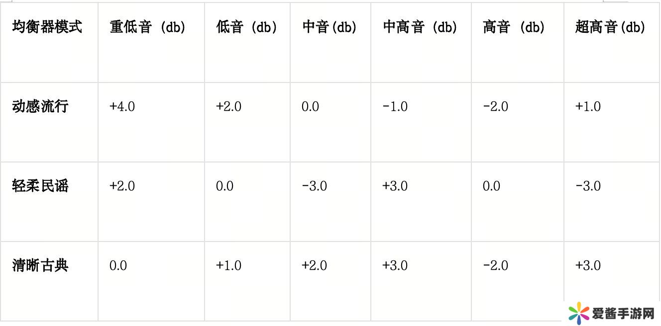 推荐设置为标准音效,不加任何后期音效处理,注重中高频的细节还原。其他音乐类型推荐设置:
