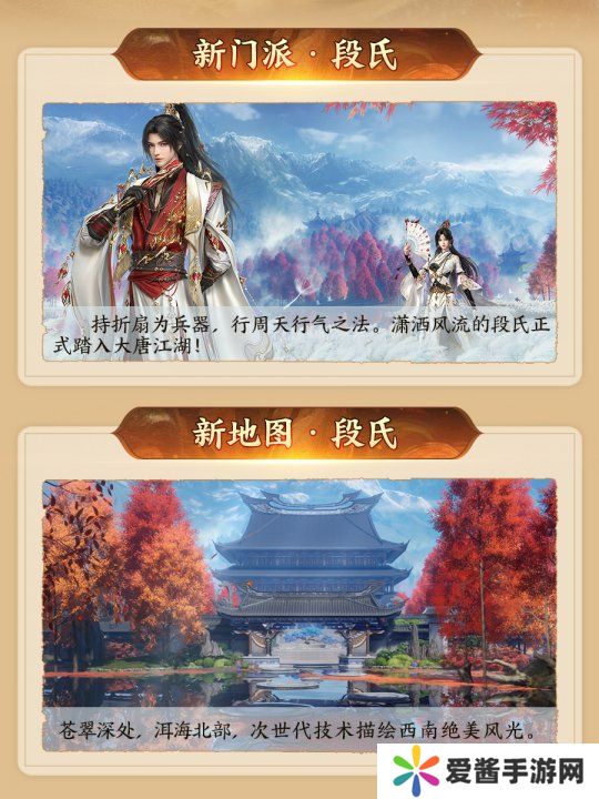 白衣胜雪,飘渺如风,新门派“段氏”现已潇洒上线。“周天功”以内力驭气,融周天行气之法,门派跟宠小熊猫机灵可爱,门派大轻功踏扇意开合,云涌风掠衣袂纷飞,分外从容!