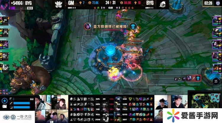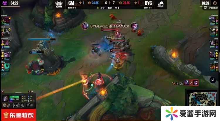 【8:30】GM再次下路四越二,这次Kid斯卡纳还是支援到位,不过GM还抗塔还是强杀掉了BYG下路组,西门的阿萝拉被换掉!