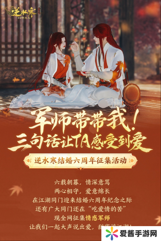 到这儿还不算完,《逆水寒》为了庆祝玩家结婚六周年,除了免费送有情人高端大气上档次的婚礼服装,还在微博平台上发起了江湖表白挑战#军师带带我#活动。一方面,官方邀请那些恋爱军师为江湖孤狼们出出主意,如何脱单,另一方面,也为有情人倾诉相思提供了难得的机会,换言之就是公费撒狗粮~