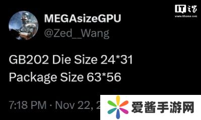 爆料还提到,GB202 GPU 的封装为 63*56 mm,也就是 3528 mm²。
