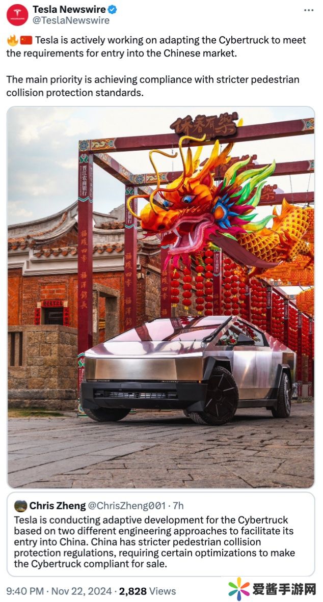 本站 11 月 22 日消息,消息源ChrisZheng001和TeslaNewswire在X平台发帖,称特斯拉正在为 Cybertruck赛博皮卡(特斯拉赛博越野旅行车)登陆中国市场做准备。
