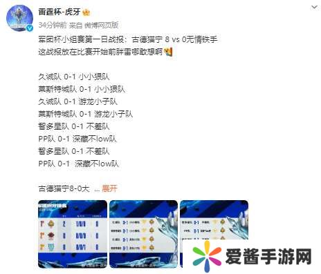 虎扑11月22日讯 军团杯首日战报:古德猫宁 8-0 无情铁手,久诚队未尝一胜