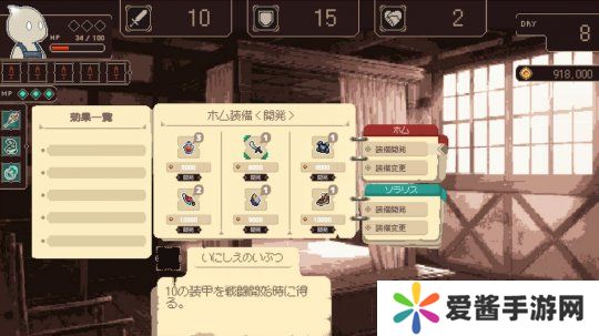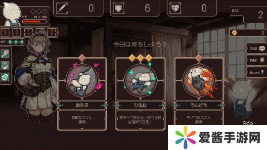 玩家每天可以选择六种活动来提升能力、学习技能、赚取金钱,同时还要面对敌人。他们还可以开发武器装备,休息恢复体力。