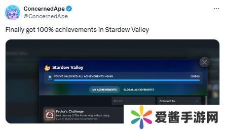不过,要说对自己开发的游戏投入精力最多的人,还得是《星露谷物语》的制作人ConcernedApe。日前,他在社交媒体上正式宣布了自己解锁游戏全成就的消息。而距离游戏发售至今,已经过去了整整八年。