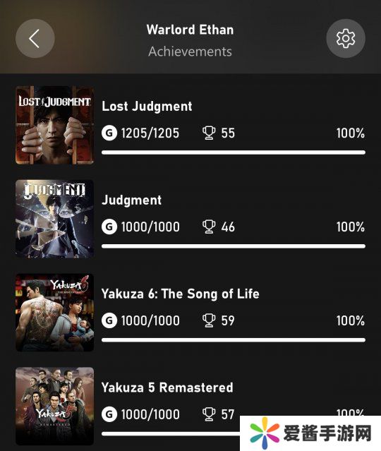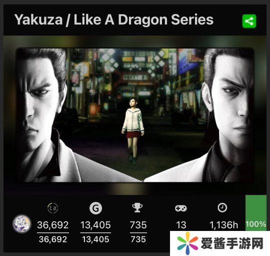 该玩家在推特上晒出了他的XboxGamerscore统计截图,其中可以看到包含《审判之眼》和《如龙:维新!极》在内的共计13款“如龙”系列游戏,都达成了100%全成就通关。