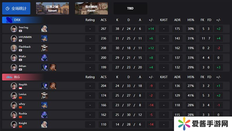 源能亚洲邀请赛瑞士轮第一轮,DRX直落两图击败了BLG。图一日落之城,DRX 13:11 BLG,图二隐世修所,DRX 13:2 BLG。值得一提的是,free1ng选手拿到了全场最高的38总击杀,DRX也是全员KD为正,反观BLG则全员负KD。