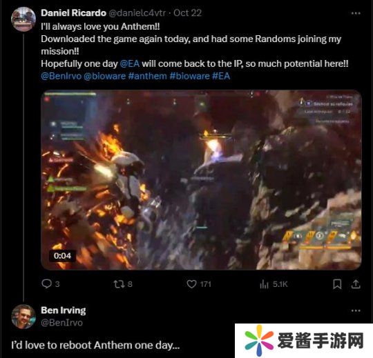 在BioWare的新作《龙腾世纪:影幛守护者》即将发售的当下,仍旧有部分玩家钟情于BioWare的老游戏。名为“@danielc4vtr”的推特用户就分享了他重新下回《圣歌》,并且还在线匹配到了其他玩家一起战斗的快乐时光。
