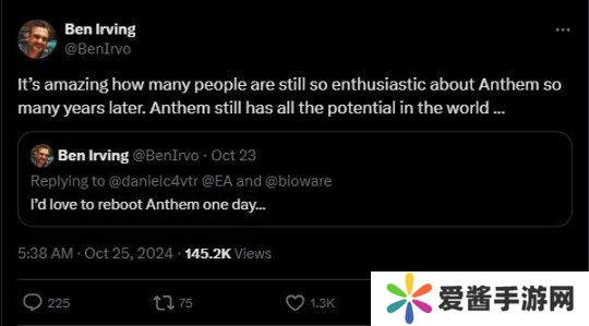 不仅如此,Ben Irving随后还补充十分惊讶时隔多年还能看到有玩家对《圣歌》如此充满热情,因此感叹:“《圣歌》在这个世界上还有着不可估量的潜力……”