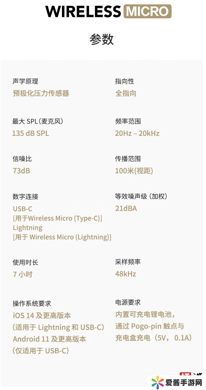 规格方面,该麦克风内置 RØDE第四代2.4 GHz数字传输技术,最远传输距离可达100米,同时配有智能增益辅助技术,可根据环境自动调节电平;还能够利用RØDE Capture远程控制 / 调节参数。