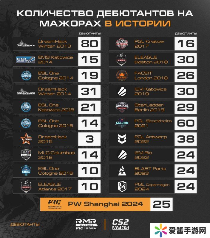 随着欧洲RMR赛事的结束,本次上海Major所有参赛队伍已经确定。在24支脱颖而出的队伍中,总共有25名选手是职业生涯首次参加Major赛事。
