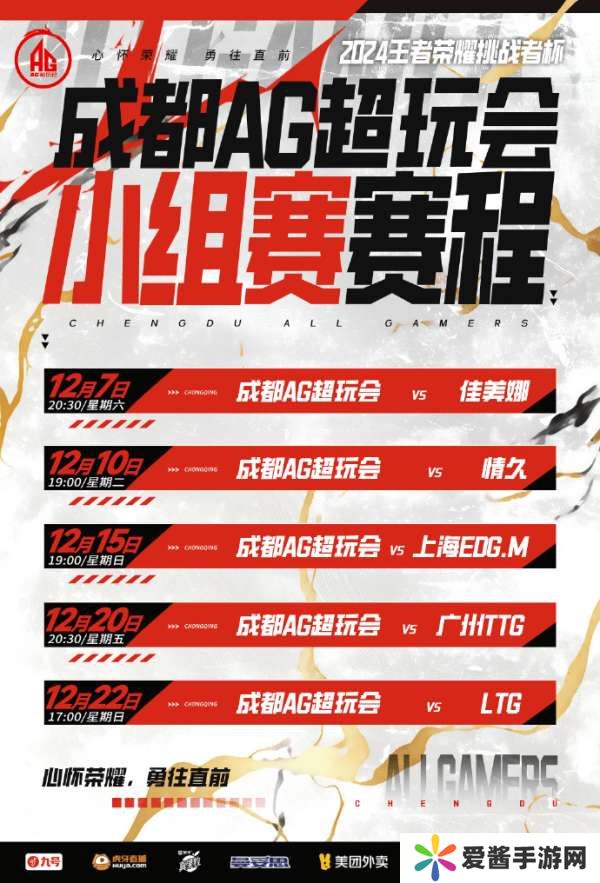 虎扑11月26日讯 首战黄金档对阵佳美娜,AG发布挑杯小组赛程:我们重庆见!
