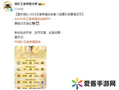 【重庆狼队·2024王者荣耀挑战者小组赛阶段赛程日历】