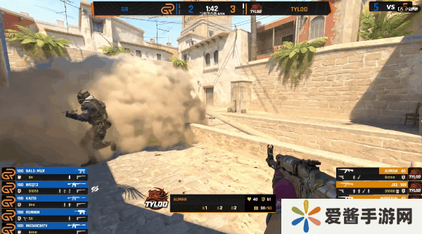 来到长枪局GR想要拿到中路控制权,但是枪法不敌TYLOO导致自己进入人数劣势,尽管大坡的队友扳回人数,最终面对B区严阵以待的TYLOO也是没能拿下比分。上半场的TYLOO在防守方展现出强大的压制能立,面对枪法的劣势GR迟迟没能拿下分数,仅仅在第四回合依靠一波提B战术成功扳回一分。来到第十回合GR两人抢夺黑屋拿到双杀开局,随后顺势推进占领B包点,凭借人数优势成功扳回一分。次回合GR想要再次使用同样战术,但是进入包点后被Jee的大狙连接两人,TYLOO再次拿下胜利。上半场结束TYLOO拿到9-3领先。