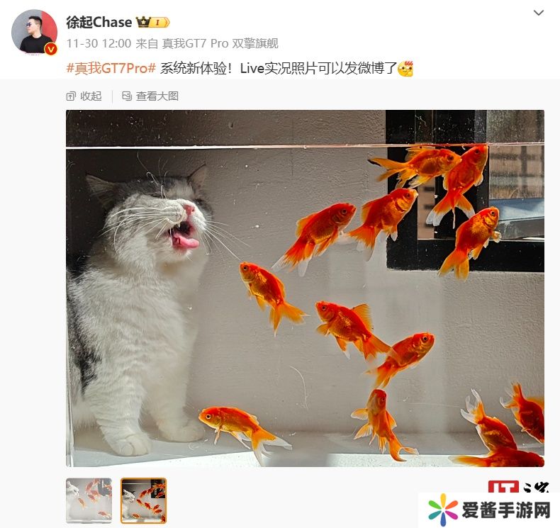 本站 12 月 1 日消息,真我 realme 副总裁、全球营销总裁、中国区总裁徐起昨日发文称,realme 真我 GT7 Pro 手机支持在微博 App 发布 Live 实况照片。