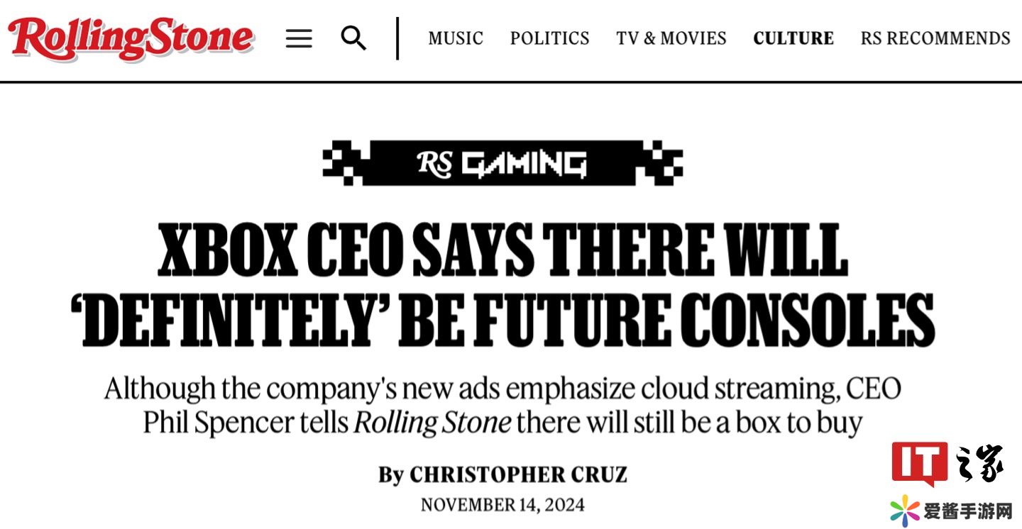 本站 11 月 15 日消息,近期微软种种举动暗示其计划将Xbox品牌与游戏机硬件分开,未来更强调Xbox云游戏,不过微软游戏业务负责人菲尔・斯宾塞昨日接受外媒《滚石》采访,声称微软未来将继续推出Xbox游戏机。