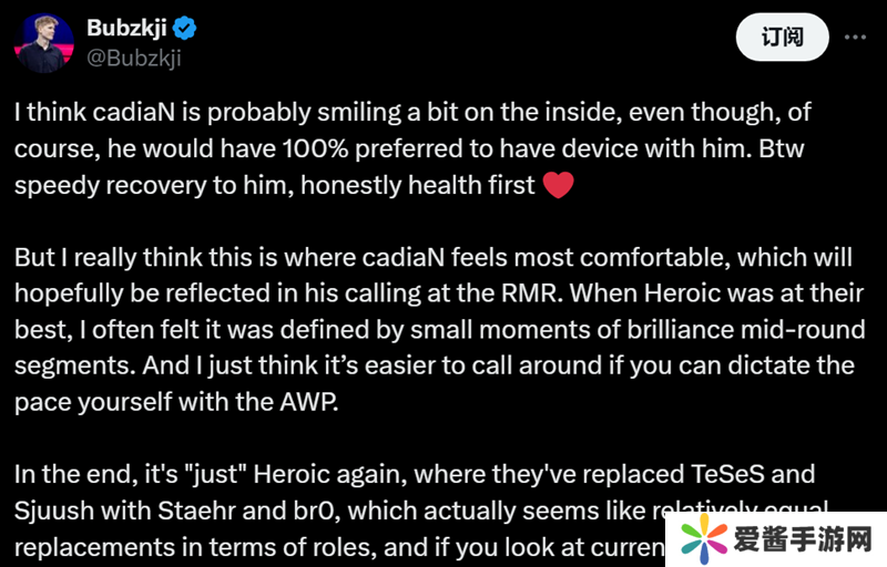日前device宣布个人因身体原因无法随队参加上海Major 欧洲RMR,br0作为替补紧急参赛。对此Bubzkji分享了自己对此事的看法。