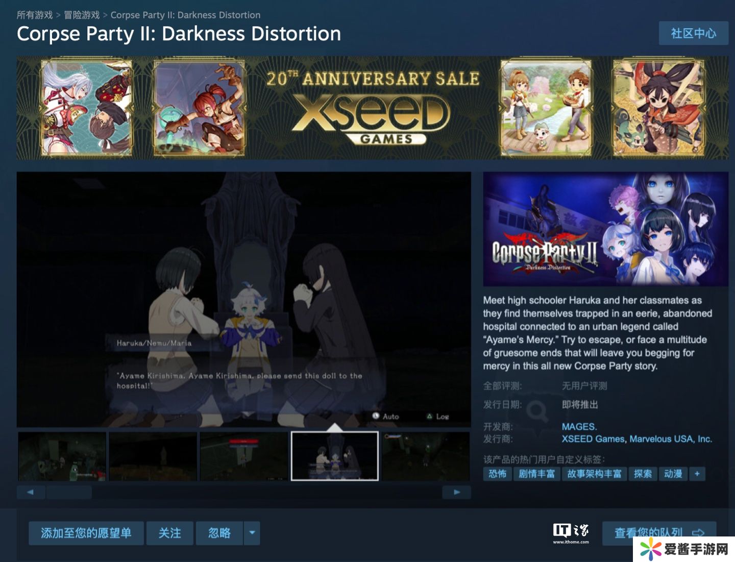 本站 11 月 16 日消息,开发商 MAGES 宣布旗下经典恐怖游戏《尸体派对》新作《尸体派对 2 Darkness Distortion(コープスパーティー II Darkness Distortion)》现已上架Steam。