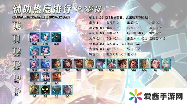 这一周辅助的热度几乎都没什么变化,毕竟也没有改动涉及到辅助,也没有新皮肤。下面我们来讨论一个很有意思的话题,大家都知道现在三大软辅朵莉亚,大乔和少司缘,他们也是当前版本仅有的三个T0辅助,那这三个英雄哪一个在路人局是最强最好用的呢?