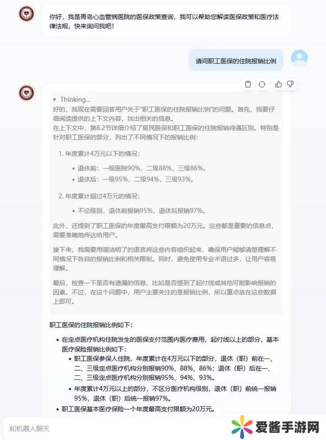 同时将医保政策、医院规章制度、医生介绍、科室介绍、检查须知等内容融入DeepSeek本地化部署,提供智能导诊、政策问答、健康宣教等方面的AI应用,形成院内知识库,使医护人员查阅资料更便捷更高效。