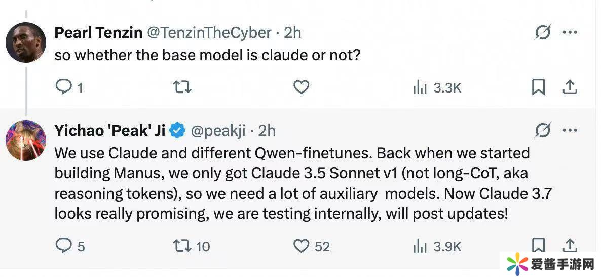 3月10日,Manus创始人季逸超在社交平台透露,Manus产品使用了不同的基于阿里千问大模型(Qwen)的微调模型。Manus是由创业公司Monica 发布的首款AI Agent产品,最近在社交媒体火爆出圈。