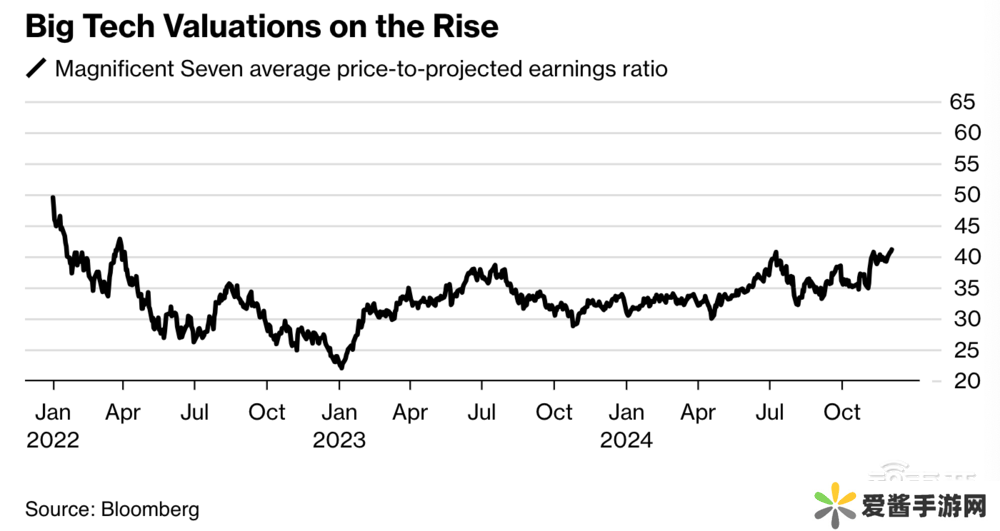 根据彭博情报的数据,这七大科技巨头在2025年的盈利增长预计仅为18%,远低于2024年预期的34%。若将英伟达,这位AI热潮的最大受益者排除在外,其余六家公司的盈利增长预计更是微弱,仅为3%。